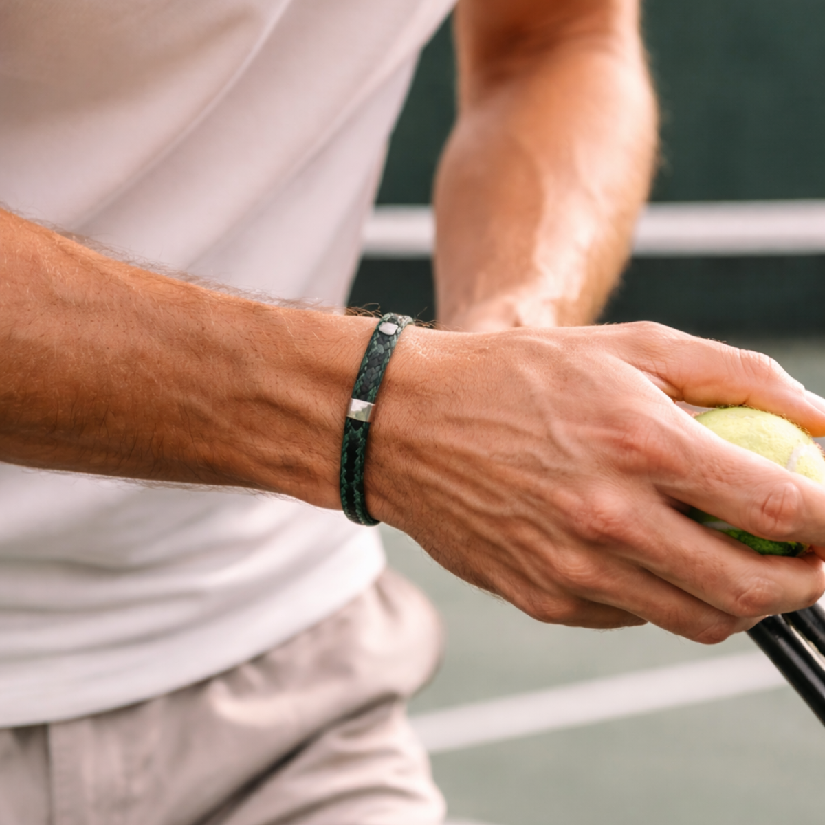 Deuce, c'est ce moment. Ces heures invisibles sur le court, la résilience, le doute surmonté. Un bracelet qui se charge en histoire à chaque match que tu joues.